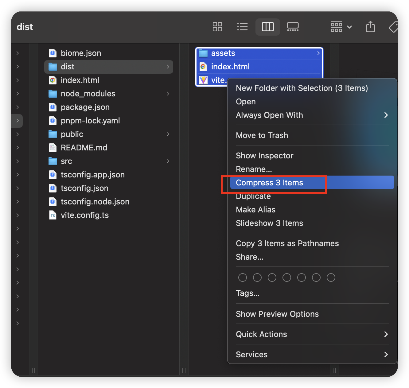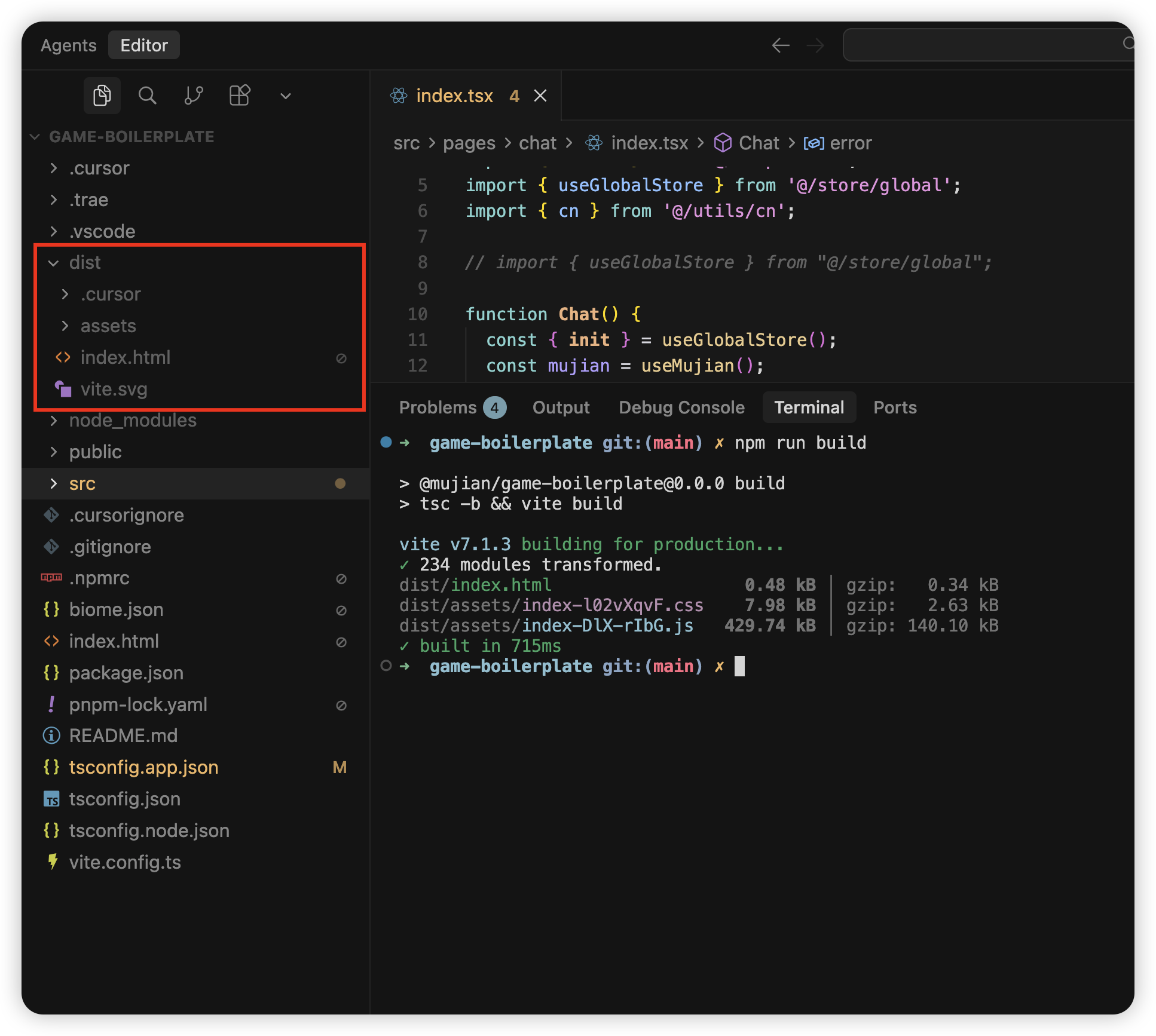 打包出来的产物会出现在项目目录下的 dist 文件夹内。