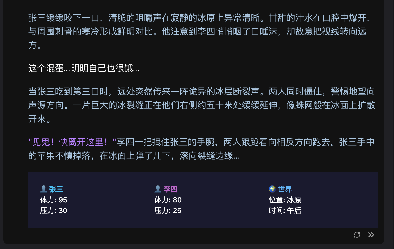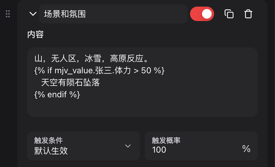 开场白1中的默认值张三的体力值是80,所以触发了陨石坠落