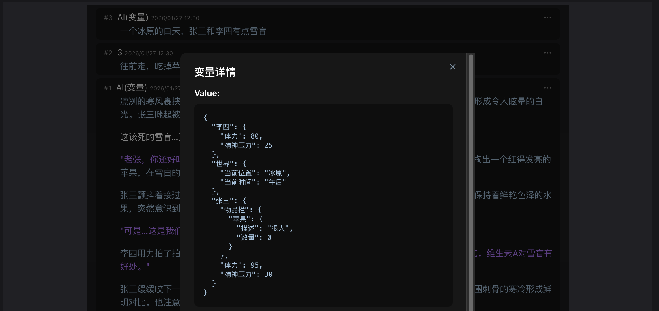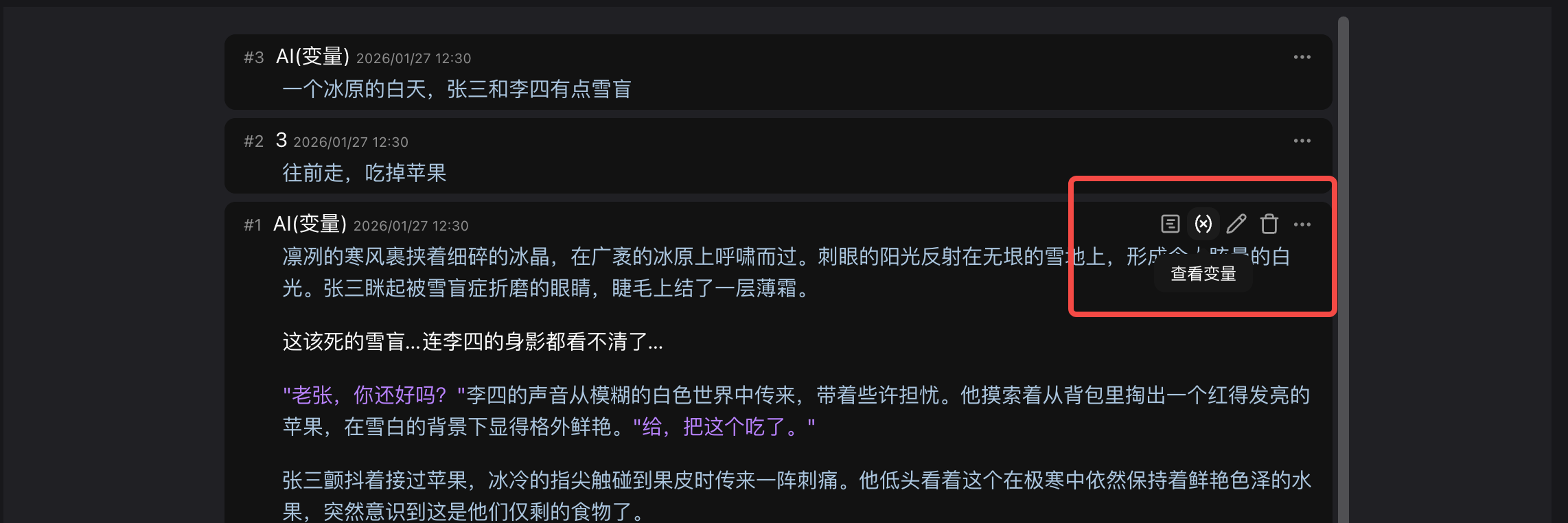 除此之外,你还可以在对话里查看每条消息对应的变量